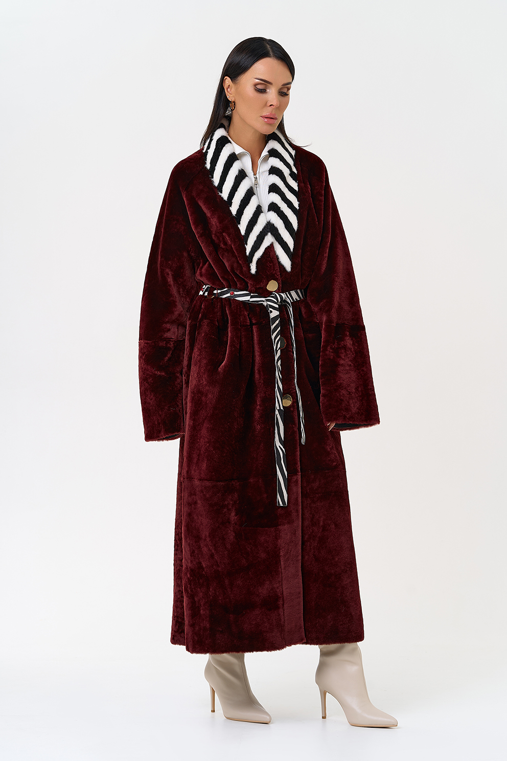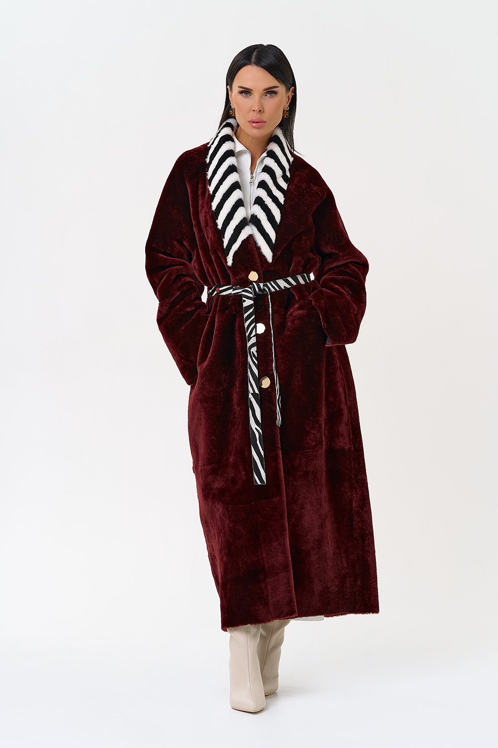 Вид застежки - кнопки, пояс из меха теленка Cavallino